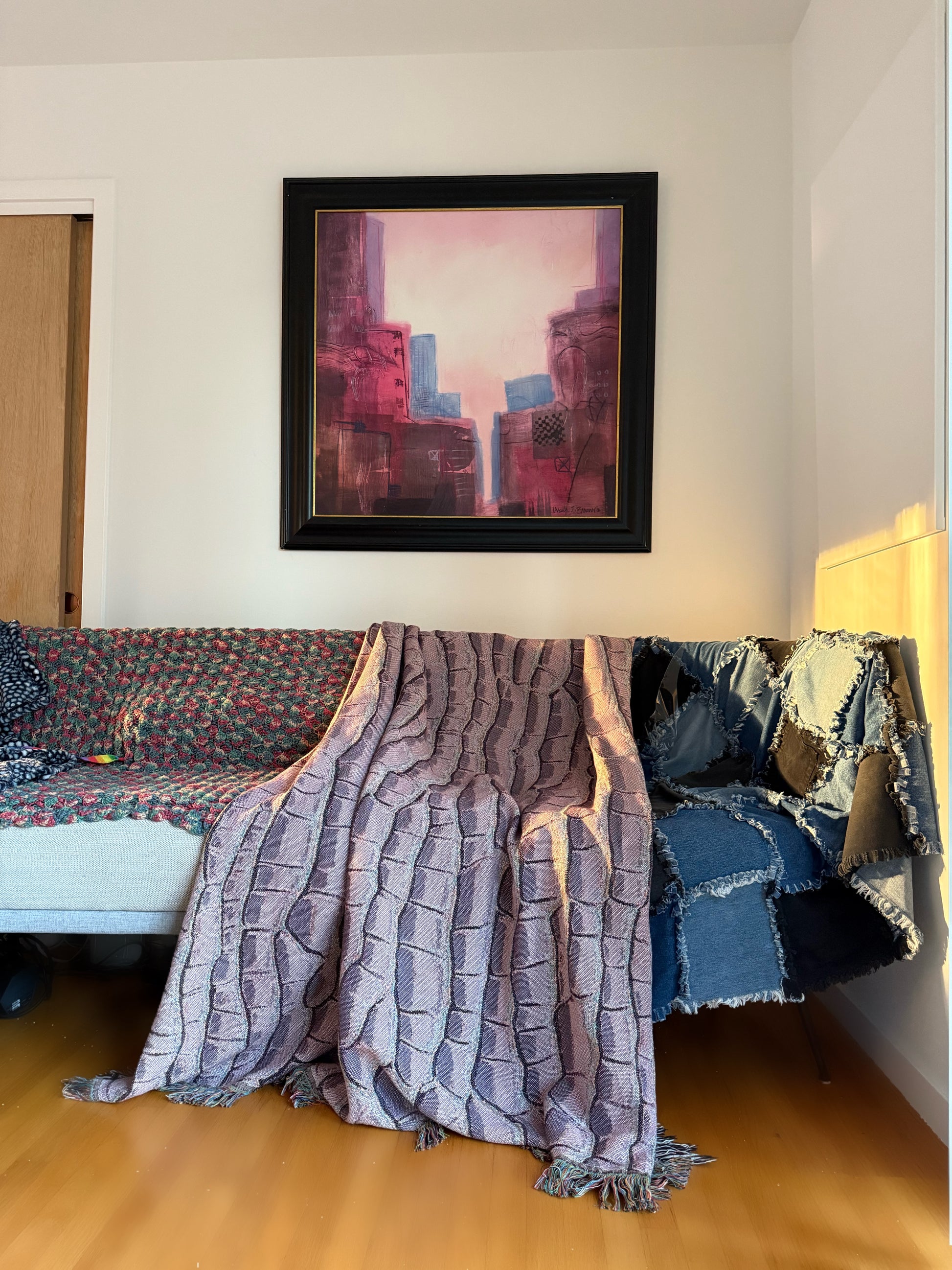 Finished with multicolor fringe. Soft, bold, and gift-worthy.